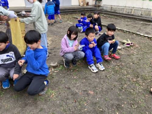 12月8日(月)、1・2年生は11月に収穫したサツマイモで焼き芋会をしました。
