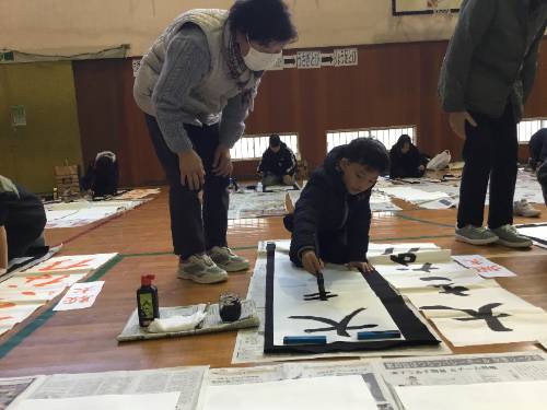 新年には、各家庭で書初めに取り組みます。練習会の成果を発揮して、元気で伸び伸びとした字を書いてほしいと思います。
