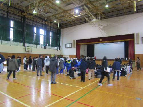 1月28日(水)昼休み、大きな地震が発生したことを想定した避難訓練を行いました。