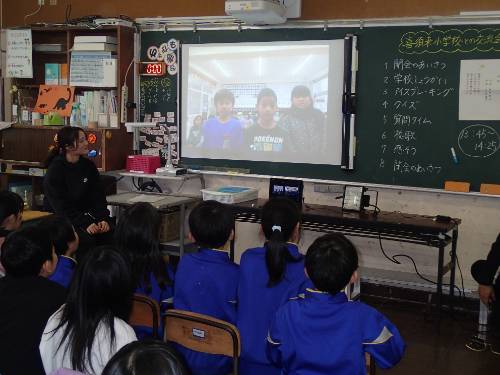 お別れの際には、3年生・4年生ともに、いつまでも画面に向かって大きく手を振り、別れを惜しんでいました。自分の学校以外の世界を知るというのは、刺激にもなり、視野を広げることにもつながります。子どもたちにとって、とてもよい機会だったと思います。いつまでもこの交流が続くとよいなと思います。