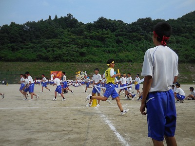 木次中学校体育祭 2017-09-19 15:30:41 木次中学校の体育祭があり、校長が来賓で参加しました。 (中学校の許可をいただき、様子を紹介します。) 入場行進 校長あいさつ 1年男子種目 応援合戦 学年リレー(1年) 学年リレー(2年) 学年リレー(3年)※恒例の競技前のコール 台風による天候不順のため2回順延となり、今日の実施となりましたが、生徒たちが楽しそうで、チームワークのよさを感じる体育祭でした!