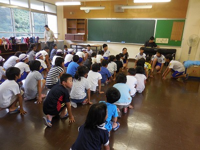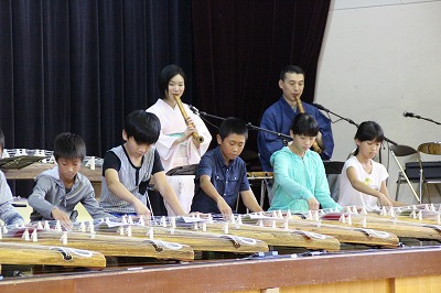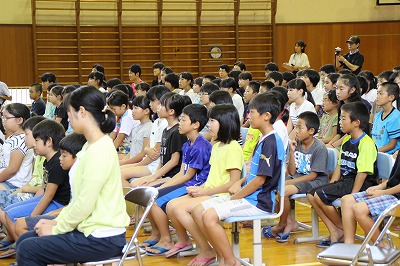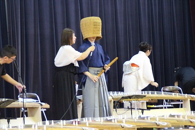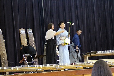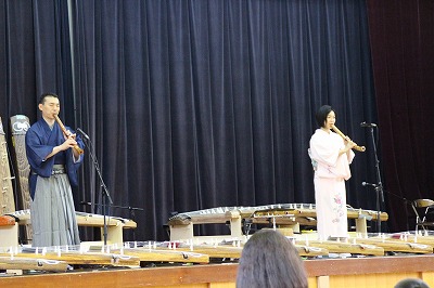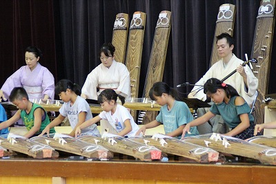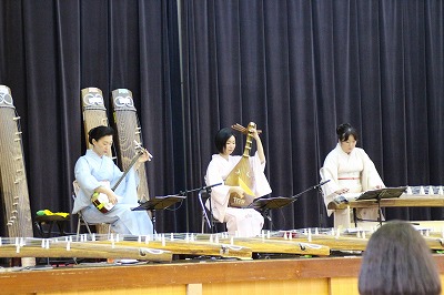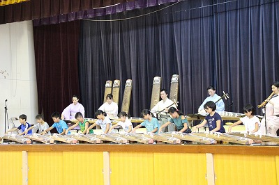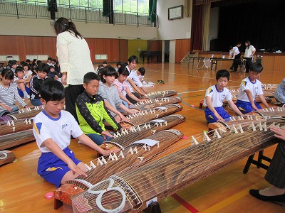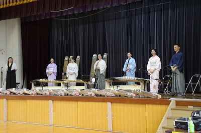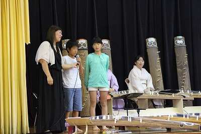 邦楽コンサート 2017-09-07 12:37:59 今日は、邦楽グループ「「玉手箱」のみなさんによる邦楽コンサートがあり、和楽器の紹介や日本の伝統音楽の鑑賞を全校で行いました。 5・6年生の代表20名も演奏に参加させてもらいました。素敵な演奏をありがとうございました。