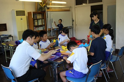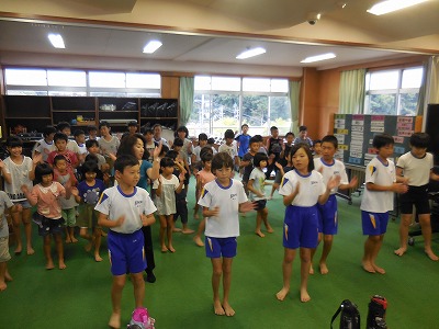 明日9/7は邦楽コンサート 2017-09-06 17:45:25 明日、邦楽グループ「玉手箱」のみなさんによる「邦楽コンサート」が本校体育館で開催され、全校児童で鑑賞します。 1学期にも来校されワークショップをしていただきました。5・6年生の代表20名も演奏に参加します。 保護者の皆さんの参観も歓迎します! 10:00~入場開始 ★初めの会10:25~ (公演10:30~12:00) 今日の放課後、職員と6年生で会場準備をしました。