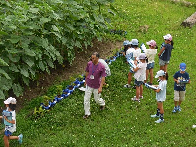 ・中庭のヒマワリ、校舎後ろの野菜が大きく育っていて、びっくりした。