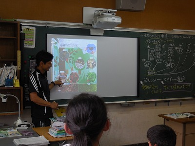 ・外国語活動では、中学校の先生を効果的に活かした授業が行われていた。