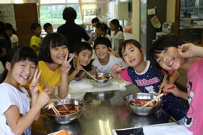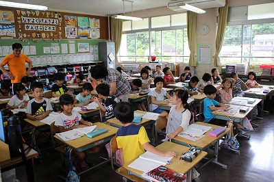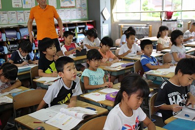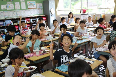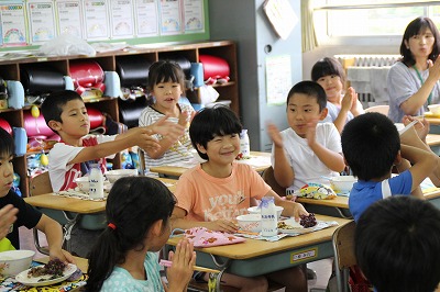2年生が29人! 2017-07-05 12:54:40 2年生は28名ですが、今日から友達が1名増えて、29名で勉強をしています。 木次子ども園で一緒だっだ友達(現在海外で生活していらっしゃいます)が、一時帰国されて、しばらく日本の小学校生活を体験したいということで2年生の学級に入ってもらいました。すぐに学級で仲良くしています。 算数の様子 給食中の放送で「あいさつのよかった友達」に拍手する2年生! 写真に写りたい2年生!