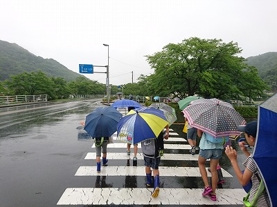 今朝の登校の様子です。雨の中でしたがPTAのあいさつ当番でも大変お世話になりました。