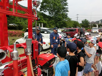 消防団の方のお話(4年生) 2017-06-03 17:14:48 5月30日に、4年生の社会科の学習で、地元の消防団の方に来ていただき、消防の仕事についてお話してもらいました。 消防車も見せてもらいました。有意義な学習になり、ありがとうございました。