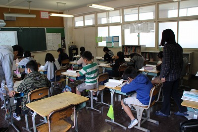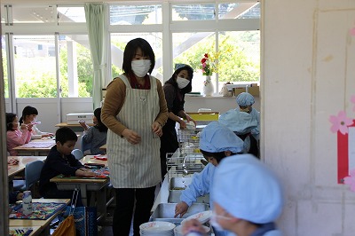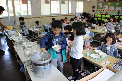支援員さんの活躍 2017-04-19 13:56:17 新しい二人の支援員さん(原先生、福間先生)にも活躍してもらっています。 5の月組の国語の授業 1年生の給食の配膳のサポート 1年生は給食をよく食べています。おかわりも…。