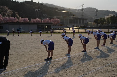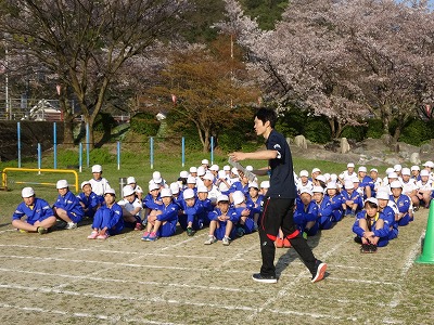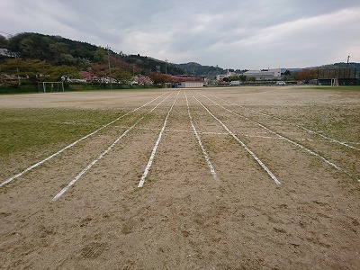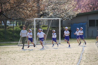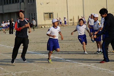 今日の陸上練習(4/14) 2017-04-14 19:49:35 今日の陸上練習は、100M走の記録を計った後、練習をしました。 子どもより速い飯塚先生! 子どもよりかなり速い持田先生!(ハンディをつけても200Mで逆転) 高学年が陸上練習を全員でがんばっています。