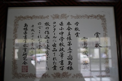 硬筆コンクールの「学校賞」を本校はいただきました。
