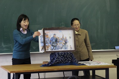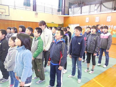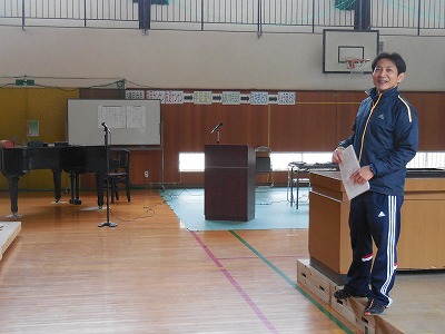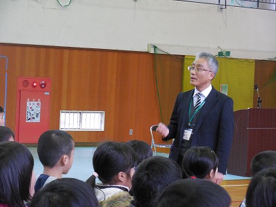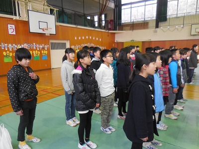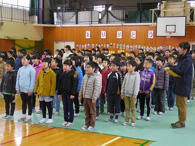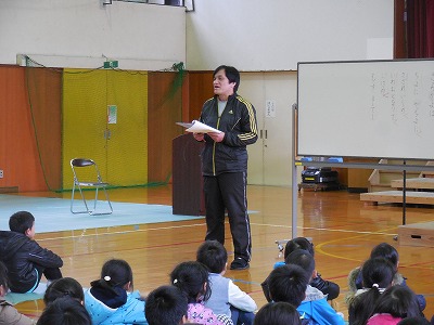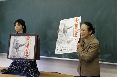 劇団「はぐるま座」さんの紙芝居 2017-03-13 21:30:12 今日の3校時に、4月に木次町(チェリヴァホール)での公演を予定されている劇団「はぐるま座」の方(二人)による紙芝居がありました。 「動けば雷電のごとく」高杉晋作と奇兵隊の活躍を描いた芝居を紙芝居に仕立てたものでした。迫力ある語りで、臨場感あふれる作品に6年生が聞き入りました。 発声法(腹式呼吸)についても教えてもらい、卒業式前の6年生にとって、貴重な機会になりました。 最後に、6年生から合唱のプレゼント! 公演予定は、4月26日(水)18:30~ チェリヴァホール です。