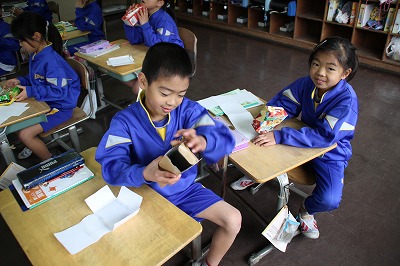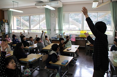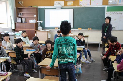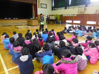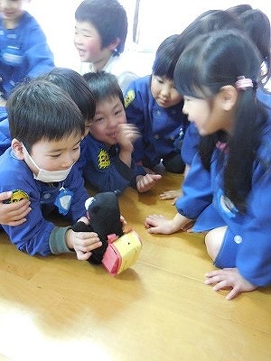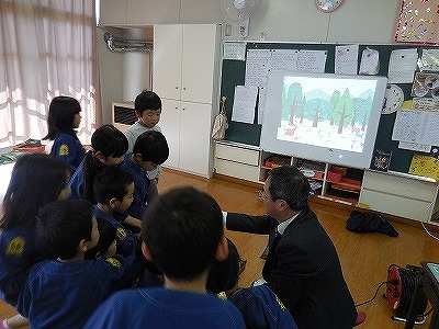 木次こども園での特別授業 2017-03-10 17:26:52 8日の教頭先生に続いて、今日10日は、木次子ども園を校長先生が訪問し、年長のすずらん組さんに特別授業を行いました。 紙芝居や絵本を読んだり、タブレットを使ったお絵かきやビデオを紹介したりしました。 タブレットで動画を視聴 おしゃべりくまもんが大人気! 新入生の入学が楽しみです!