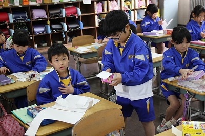 2年生の授業の様子 2017-03-09 12:33:25 昨日の2年教室のスナップです。月組では、図書館司書の栂先生の授業が展開されていました。 図書館の科学の読み物の紹介を実験をしながらしてもらいました。 隣の星組では、算数の授業でしたが、持田先生の指導で進められていました。
