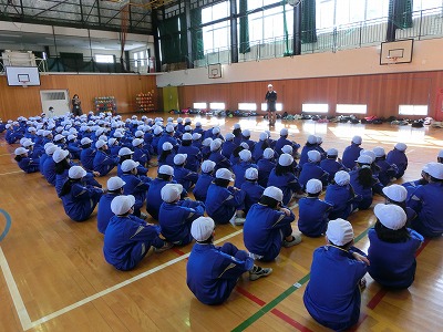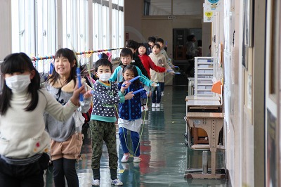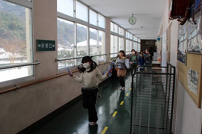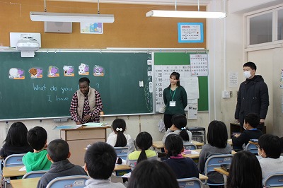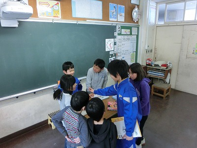 留学生さんの来校 2017-02-14 21:22:49 早稲田大学の留学生さんが現在、雲南市に滞在中ですが、今日は木次小を訪問してもらい、子どもたちと交流しました。 3年生の英語活動の様子 4の月組での給食 4の星組