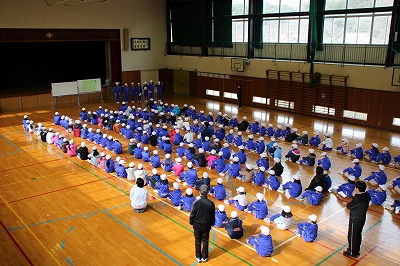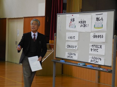 避難訓練(火災想定) 2017-02-09 13:12:40 今日の業間の休み時間に火災想定の避難訓練を行ました。休憩時間ですので、教職員がいない場合には自分で判断して避難しなければなりません。 児童や職員には実施時刻を知らせないで実施しました。子どもたちは、静かに放送を聞いて、避難することができました。 ※今日は雨天のため、避難場所を体育館として実施しました。 校長先生の話(掲示物の前で後で撮影しました。) 教頭先生のお話「おはしもて」の確認