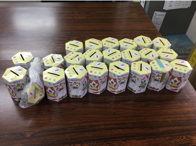 各家庭で取り組んでもらった貯金箱を学校で集めています。明日が締め切りです。よろしくお願いします。
