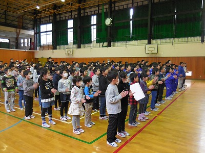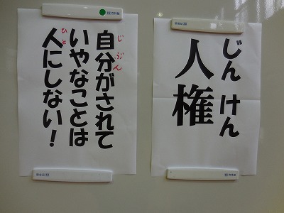 全校集会で、表彰の後、「人権」について校長先生の話を聞きました。