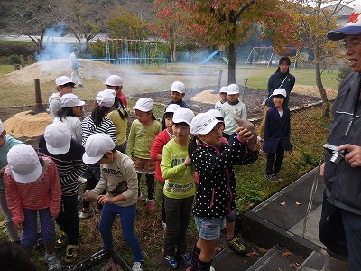 焼きいも 2016-11-01 17:49:02 今日は、1・2年生が地域の方(下熊谷交流センターの方)にお世話になり、焼き芋をしました。 すくもを燃やして、昔ながらの焼き芋を子どもたちは楽しみました。 1年生のおいしい顔!※2年生は給食と一緒に食べました。 半日、お世話になり、ありがとうございました。