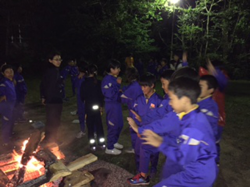 外は寒かったですが、キャンプファイヤーの火に温まりながら楽しく出し物を発表しました。