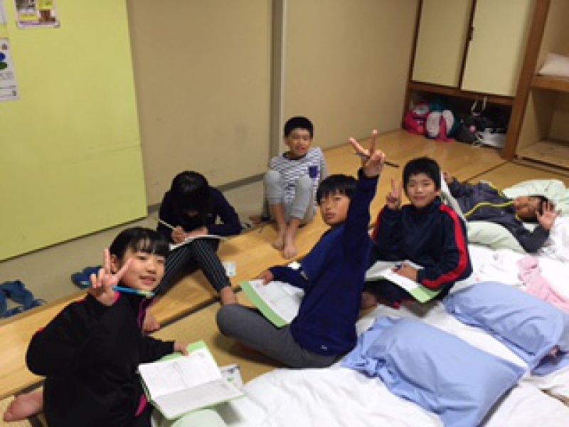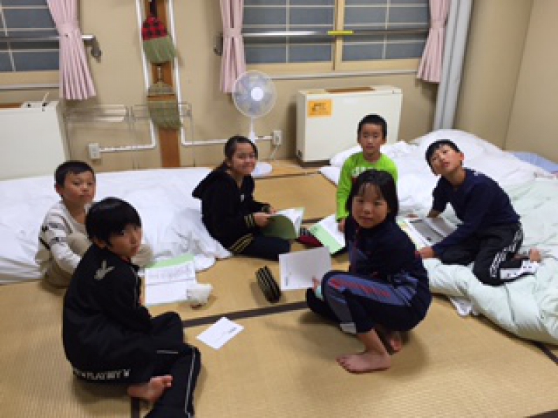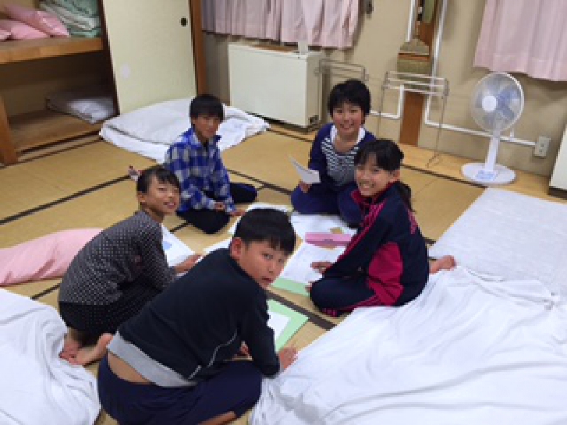 今日の活動を振り返って班会議をしています。明日の活動を楽しみに。おやすみなさい。