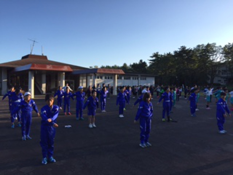 スタッフの方の話をよく聞いています。斐伊小学校の子どもたちと同時にスタートします。