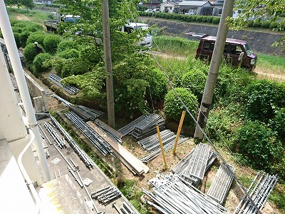 室外機を設置するために足場を組む作業も・・・。