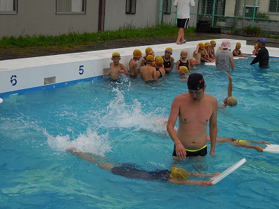 水泳教室 2016-07-08 18:48:26 今日は、あいにくの天気(曇り時々雨)でしたが、3,4年生の水泳教室がありました。 4名の講師に方に熱心に指導していただき、子どもたちの泳力が向上しました!