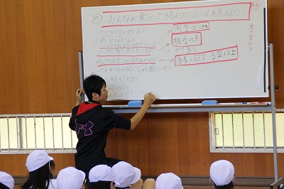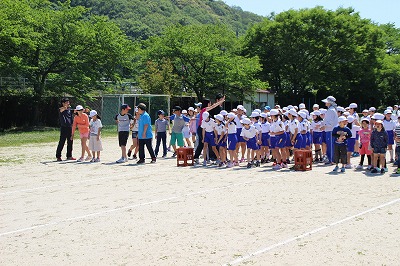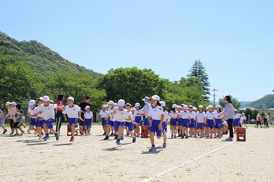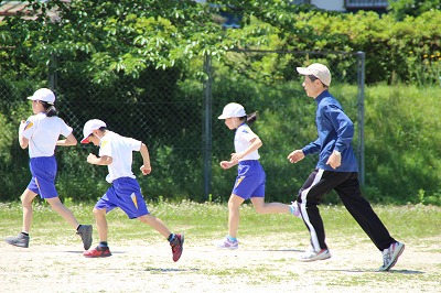 ランニングタイム 2016-05-18 15:22:11 明日、校内ロードレース(レッツラン)があります。それに向けて、業間に子どもたちが校庭(トラック)を走りました。 昨年までは、ジョギング程度の運動でしたが、今年度から、インターバルトレーニングで、校庭をしっかり走るようにしました。低中高学年毎に4名で競走して走るようにしました。 子どもたちと一緒に走る先生もいます。 若手の先生だけでなく、ベテランも頑張っています!