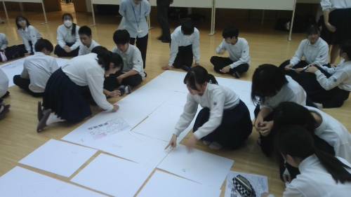 壁画制作 2025年10月17日 現在、放課後の時間を使って、合唱コンクールに向けた壁画制作を各専門委員会で分担して行っています。合唱コンクール当日は全校生徒で仕上げた壁画がステージを彩る予定です。お楽しみに!