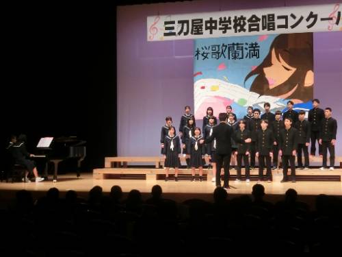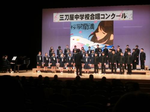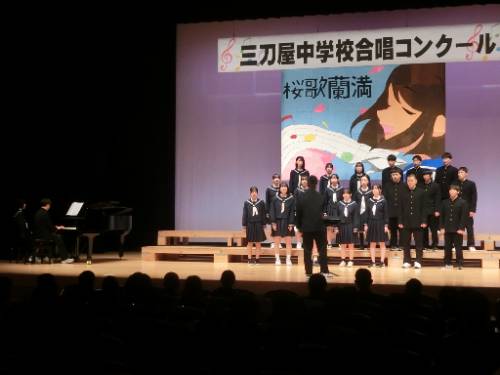31日(金)チェリヴァホールで令和7年度三刀屋中学校合唱コンクールを開催しました。『学級合唱』『全校合唱』『吹奏楽部の演奏』、それぞれにおいてこれまでの練習の成果を存分に発揮し、会場を大いに盛り上げました。平日にもかかわらず、たくさんの方々に来場いただき、ありがとうございました。