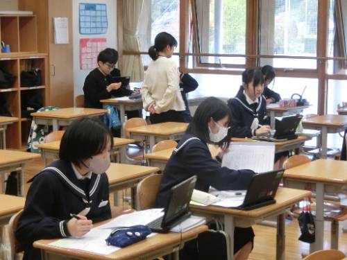 探究学習(1・2年生) 2025年11月11日 11日(火)総合的な学習の時間には、1・2年生とも探究学習に取り組みました。1年生は12月2日(火)の発表会に向け、2年生は10月の中間発表会からさらに学びを広げ深めていく学習を進めています。