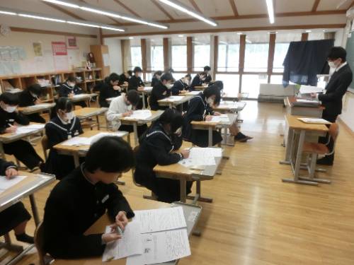 3年生期末テスト 2025年11月21日 20日(木)・21日(金)の2日間、3年生は期末テストに臨みました。進路決定に向けて重要な位置づけのテストでもあり、いつも以上に緊張感の漂う中でのテスト受験となりました。