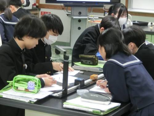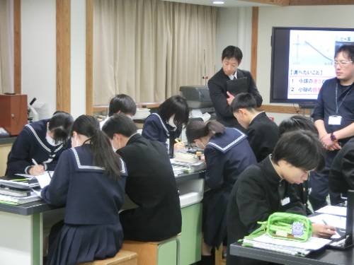 21日(金)5時間目、島根県教育センターから園山指導主事にお越しいただき、市教研の研究授業として3年1組の理科を公開しました。期末テスト後ではありましたが、グループで協力しながら実験や考察に熱心に取り組んでおり、しっかりと学びを深めることができました。