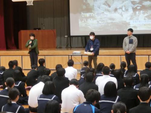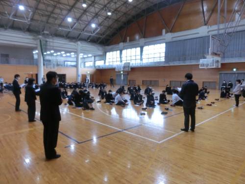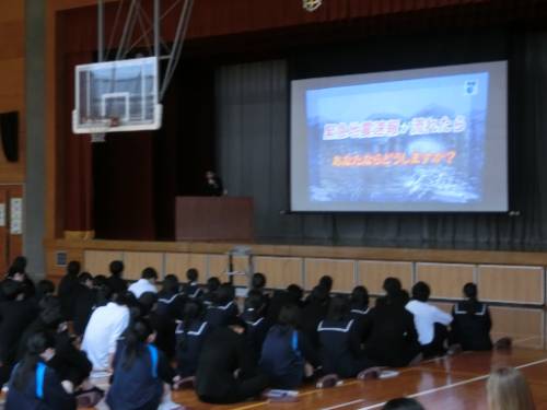 25日(火)、2学期避難訓練を行いました。今回は地震と原発事故による避難を想定した訓練でした。ガラスの多い本校の特徴から、避難経路をより丁寧に確認するなど綿密に計画して実施しました。生徒たちはシェイクアウト訓練及び避難行動ともきちんとできており、参加いただいた雲南消防署の方からも褒めていただきました。