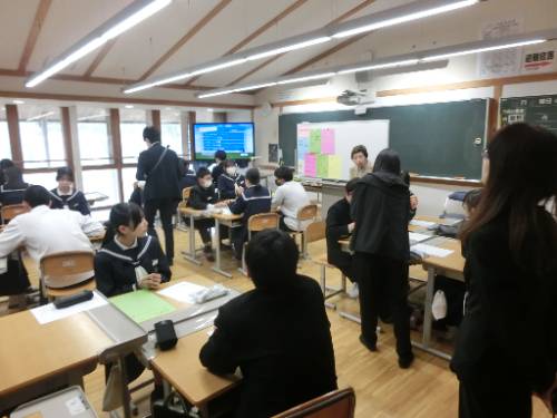 28日(金)、デートDV防止コーディネーターの宍倉先生をお招きし、3年生2クラスの授業とPTA講演会でのお話をしていただきました。生徒たちにとっても、講演会に参加された保護者の方々にとっても、わかりやすくかつ考えさせられる内容で、今後の生活に生かしていけると思います。