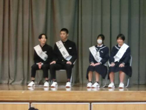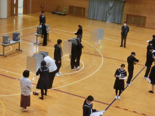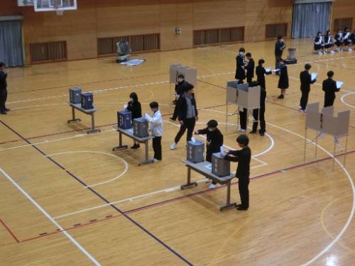 4日(木)、生徒会役員立会演説及び投票が行われました。2年生から生徒会長に2名、副会長に3名の立候補があり、それぞれの候補者が推薦人とともに立会演説に臨みました。みんな緊張の面持ちではありましたが、堂々と演説しており、頼もしく感じました。その後、投票が行われ、明日朝には開票結果が伝えられます。