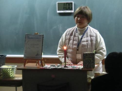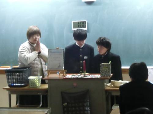 ストーリーテリング(ろうそくのお話) 2025年12月12日 3日(水)~12日(金)までの期間、本校の読書週間に合わせ、朝活動の時間に学校司書によるストーリーテリング(ろうそくのおはなし)を各クラスで行いました。生徒たちは、ろうそくが灯っている間、お話の世界にひたりました。