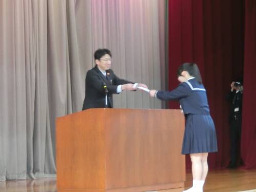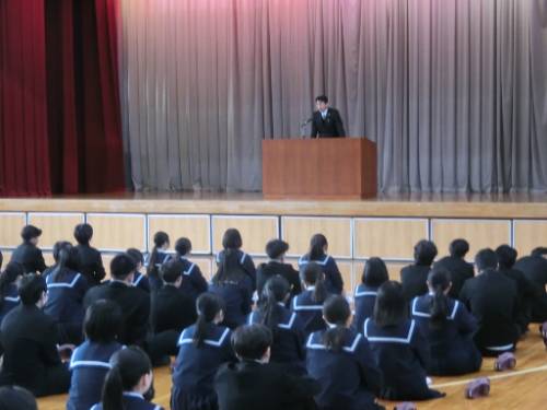 14日(水)、3学期の学級委員任命式を行いました。1年の締めくくりとなる今学期、学級をしっかりまとめてくれることを期待しています。