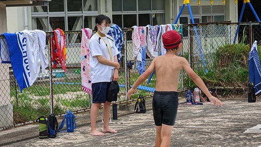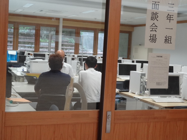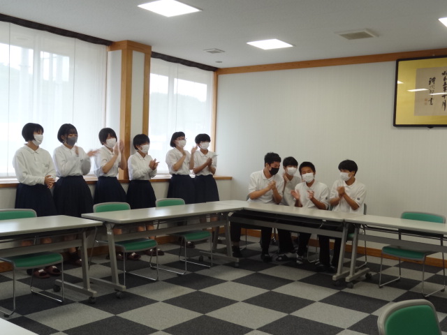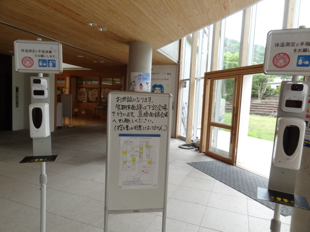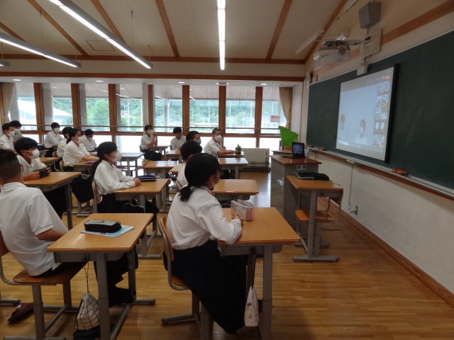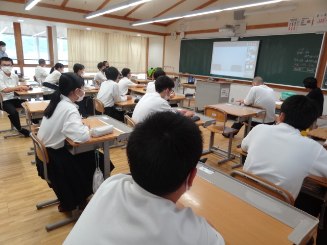 新型コロナウイルス感染症の島根県の感染者数が増加していることや熱中症対策として、各教室と会議室をリモートでつないで行いました。