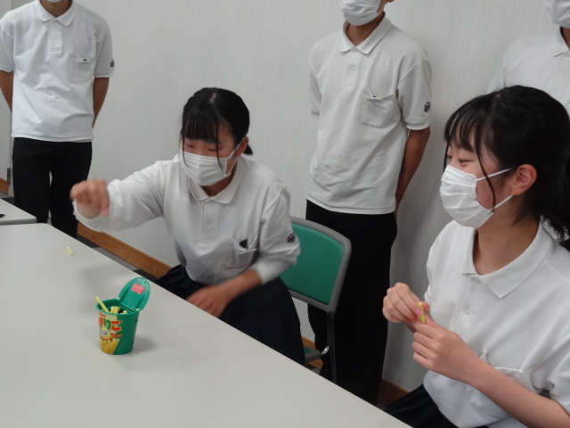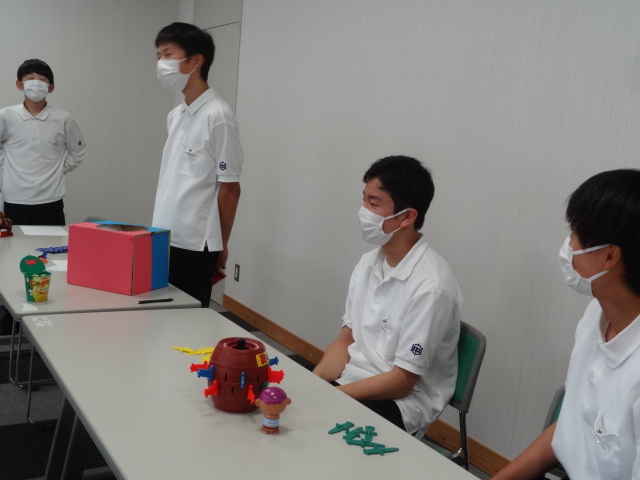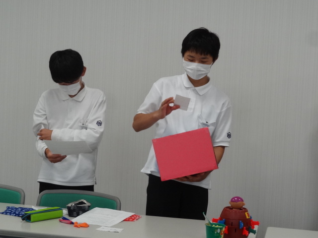 生徒会執行部を中心に、学級の代表者がゲーム形式で色を決めました。抽選の結果、赤組は、1の1、2-2、3-2、青組は、1の2、2の1,3の1に決定しました。