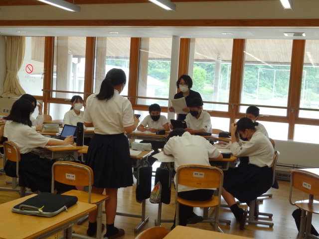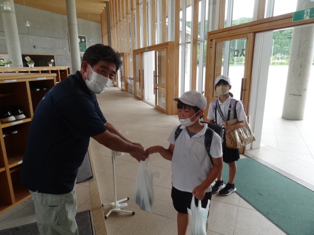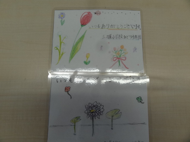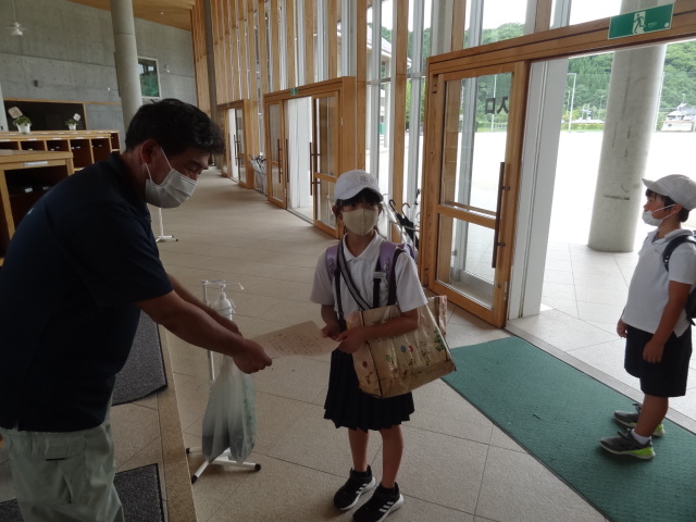今年も中学校の近くに住んでいる小学生2名が下校途中に中学校まで届けてくれました。