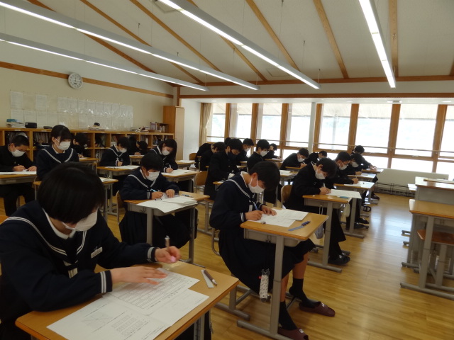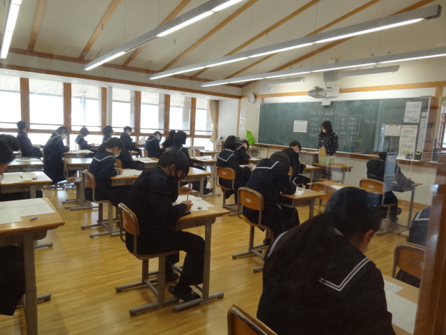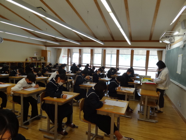 今日19日(火)は、3年生は全国学力調査、2年生は数学の課題テスト、1年生は国語、算数、社会、理科の小学校の復習テストがありました。全国学力調査では、今までの学習の定着の様子や、それぞれの教科の強みや弱みを分析することによって、個人の今後の学習方法を考えるための参考にしたり、授業をよりよくしていくための手立てを考えたりしていきます。