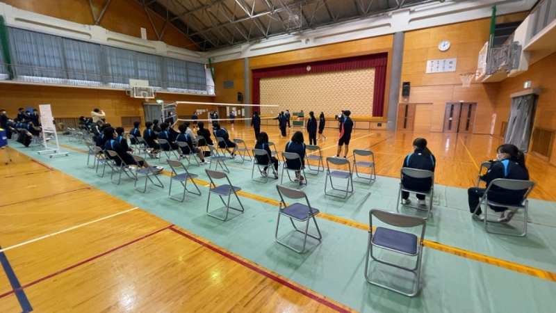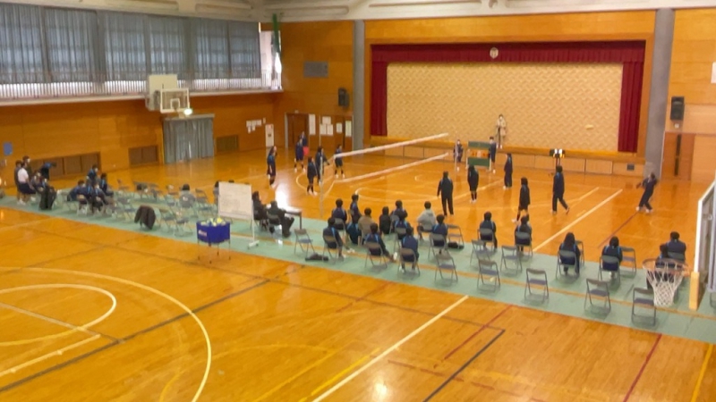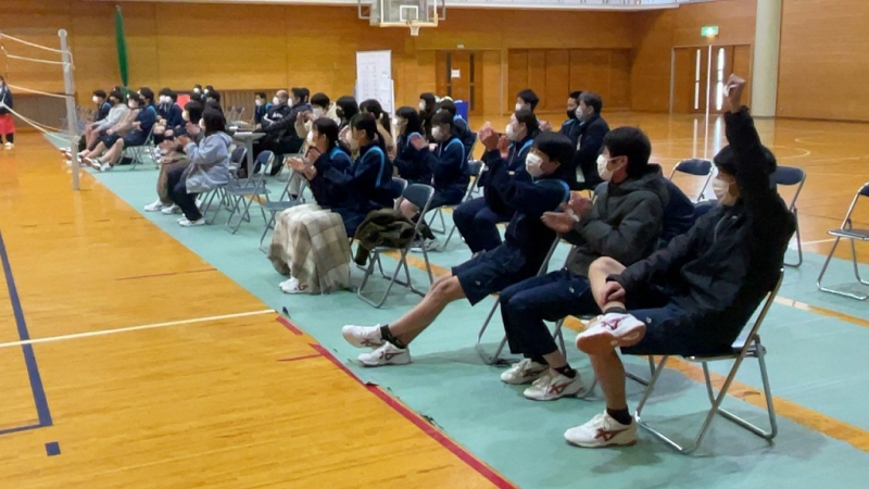生徒を代表して、白築くんに受け取ってもらいました。