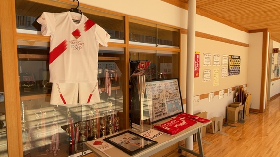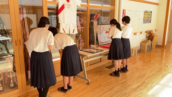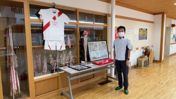 ご厚意で関連グッズをお借りし、「聖火リレーコーナー」を設置させていただきました。