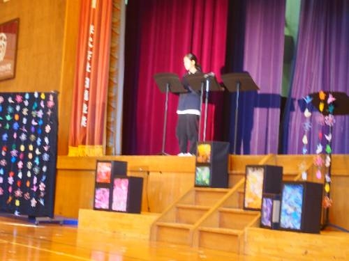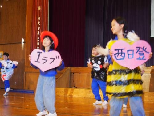 今日は、ふれあい祭&にしっ子発表会でした。2学期に入ってから子どもたちは、この日に向けて準備を進めてきました。1,2年生は、町探検でお世話になった方々への感謝を国語の教材に乗せて発表しました。3,4年生は、西日登に伝わるオロチ伝説を題材にダイナミックに表現してくれました。6年生は、平和への思いを温め続け、今日すべての人、世界に向けて、自分たちの思いを伝えてくれました。