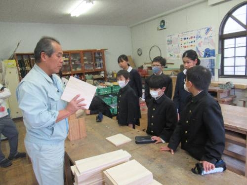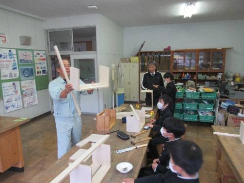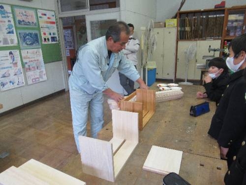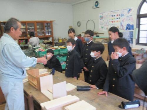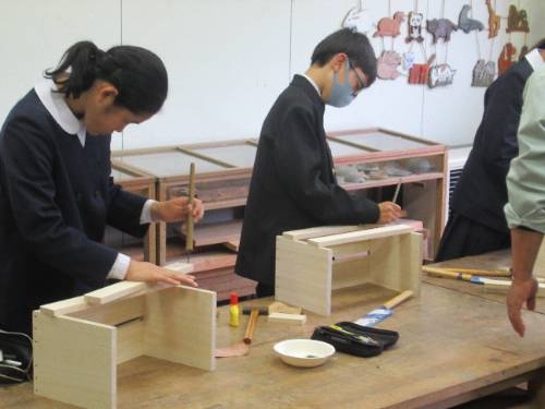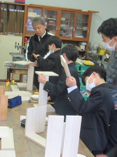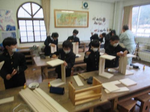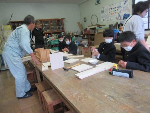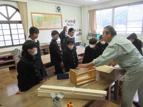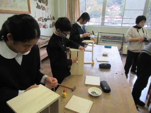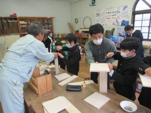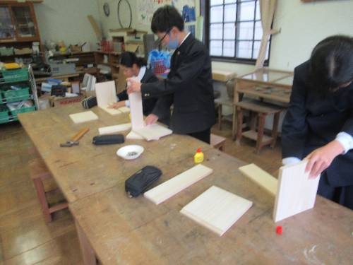 12/1 クラブ活動で、マガジンラックを制作しました。今年も柿木木工所の柿木さんにお世話になり、材料の取り扱いや釘打ち、のこぎりの使い方などを丁寧に教えてもらいながら、活動に取り組むことができました。