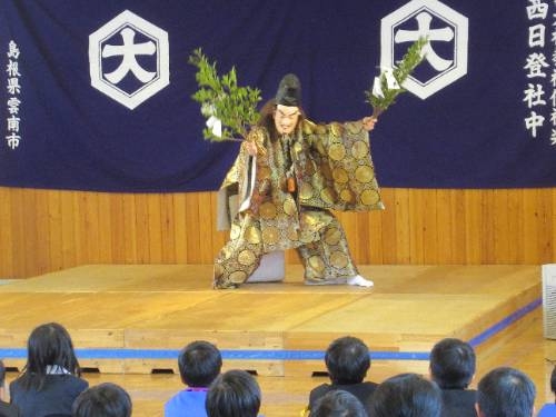 西日登は、神楽をとても大切にしている地域です。そんな神楽を大事にしていきたいという願いから3、4年生は、ふれあい発表会で発表してくれました。みんなが大事にするこの西日登神楽をこれからも大切に守っていきたいです。守っていくのは・・・・