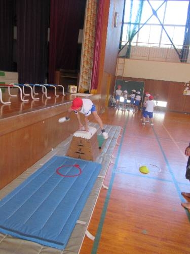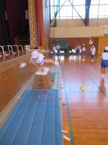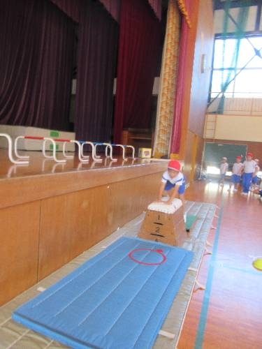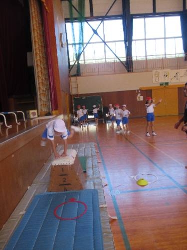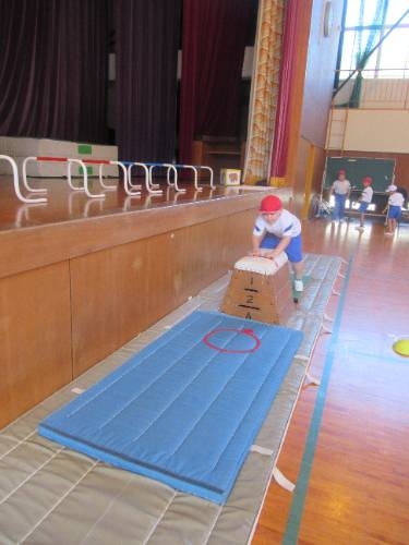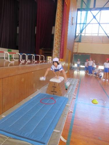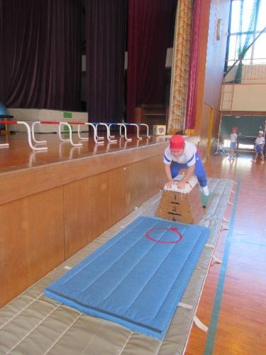 みんな跳べたぞ! 1,2年生は跳び箱にチャレンジしています。練習に練習を重ね、本日、全員が跳び箱3段を飛ぶことがてきました。踏み切りの強さ、着手の位置、自分の身体を支え、進行方向に押し出すタイミングなど、しっかりと意識して全員クリアすることができました。おめでとう!よく頑張りました。