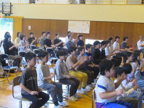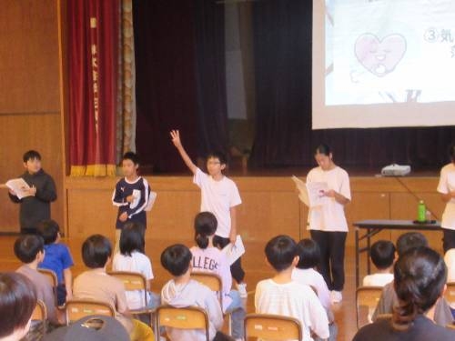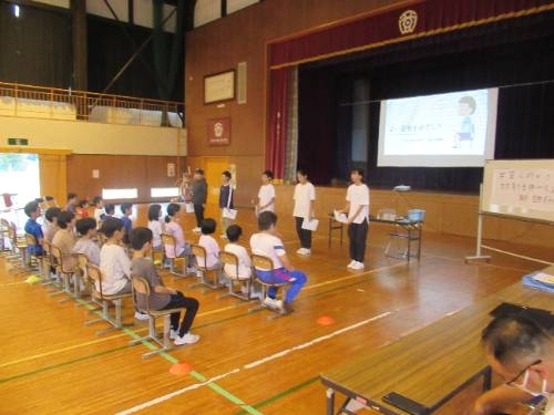 10/16 学校保健委員会を開催し、「学習に向かう体づくり」をテーマに子どもたちの心身の発達について研究されている吉野先生をお招きし、講演していただきました。「姿勢」については、昨年より研究の一環として西日登小学校でも日々、強く意識して子どもたちと実践してきましたが、その意味や続けていく大切さについて丁寧に教えていただきました。ペタ・ピン・グーや指を接着剤でつけてようにして姿勢を正したり、音を立てずに立ったり、座ったりすることも自分の身体を自然に動かすことになり体の軸を作っていく運動になることを教えてもらった子どもたちは大変驚いていました。明日からの子どもたちの「姿勢」に注目です。